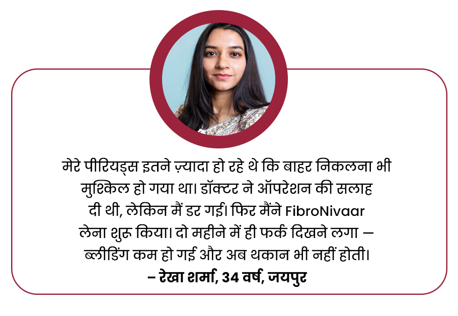 рдЕрддреНрдпрдзрд┐рдХ рдмреНрд▓реАрдбрд┐рдВрдЧ, рдкреЗрдЯ рдореЗрдВ рд╕реВрдЬрди, рдердХрд╛рди рдФрд░ рдбреЙрдХреНрдЯрд░ рдХреА рдСрдкрд░реЗрд╢рди рдХреА рд╕рд▓рд╛рд╣? рдЕрдм рдмрд┐рдирд╛ рд╕рд░реНрдЬрд░реА рдкрд╛рдПрдВ рд░рд╛рд╣рдд тАФ FibroNivaar рдЖрдпреБрд░реНрд╡реЗрджрд┐рдХ рдХреИрдкреНрд╕реВрд▓ рдХреЗ рд╕рд╛рдеред